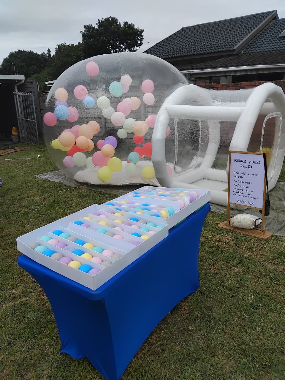 - 4 hour time slots for the bubble house. 8am to 12pm | 2pm to 6pm